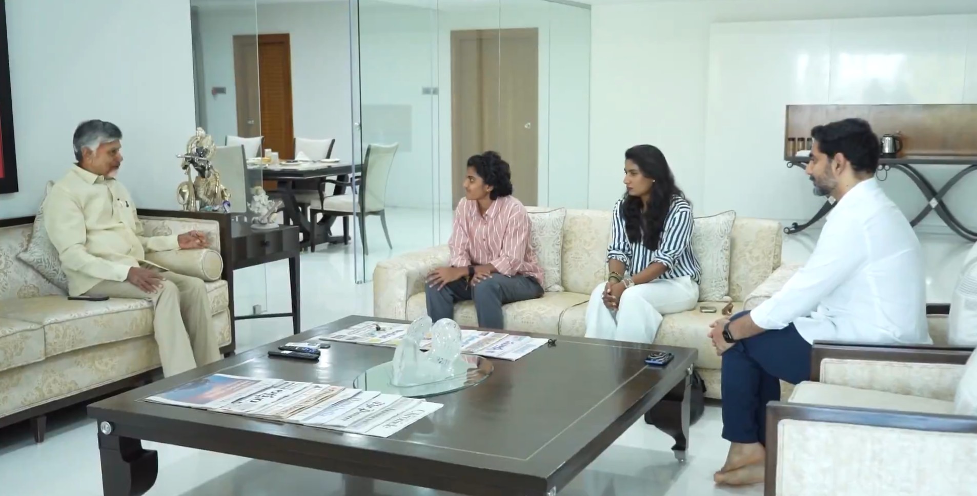 Shree Charani, who played as part of the World Cup-winning Indian Women's team, met Andhra Pradesh CM N Chandrababu Naidu and Minister Nara Lokesh at the CM's residence. Former cricketer and ex-captain Mithali Raj was also present during the meeting.