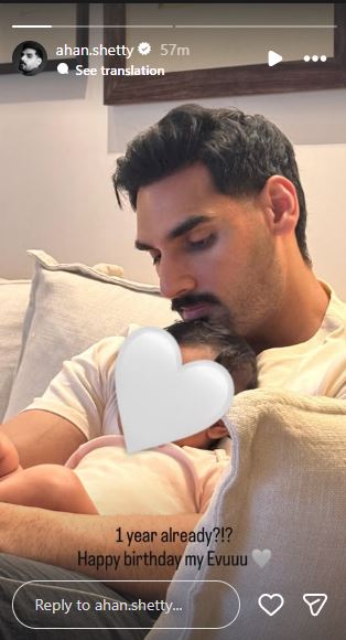 Mama Ahan Shetty also shared a picture of his little 'Evaaru' where he was holding her in his lap.