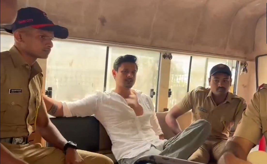 The actor was escorted by the Thane Police to the van after making the arrest.