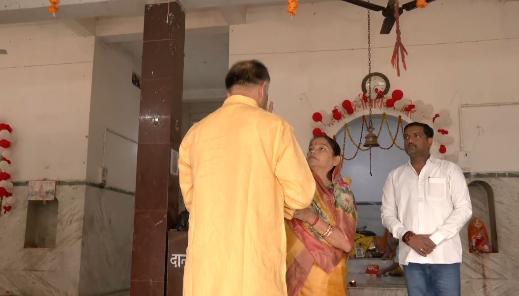 Rashtriya Janata Dal (RJD) candidate from Mokama, Veena Devi and her husband and former MP Surajbhan Singh offered prayers at a temple on the polling day in Mokama.