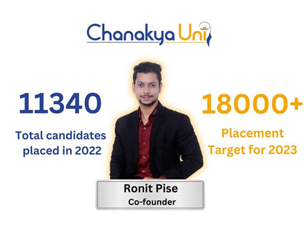 Pune (Maharashtra) [India], February 22 (ANI/PNN): ChanakyaUni, co-founded by Ronit Pise and two other founders, is a socially motivated organization that is dedicated to providing quality IT education to candidates from both rural villages and urban cities at an affordable cost increasing Youth Empowerment in the country. The organization has made a significant impact in the IT industry by placing 11340 candidates in 2022 and is now looking forward to building the careers of 18000+ candidates in 2023.