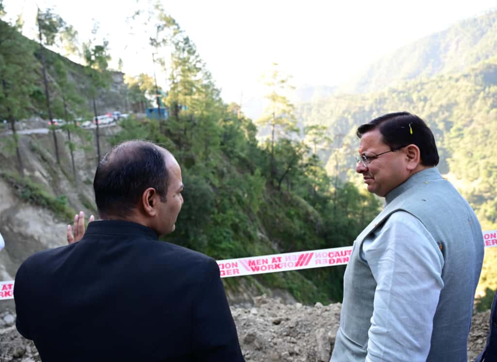 CM Dhami conducts on-site inspection of Swala danger zone on Tanakpur NH in Champawat