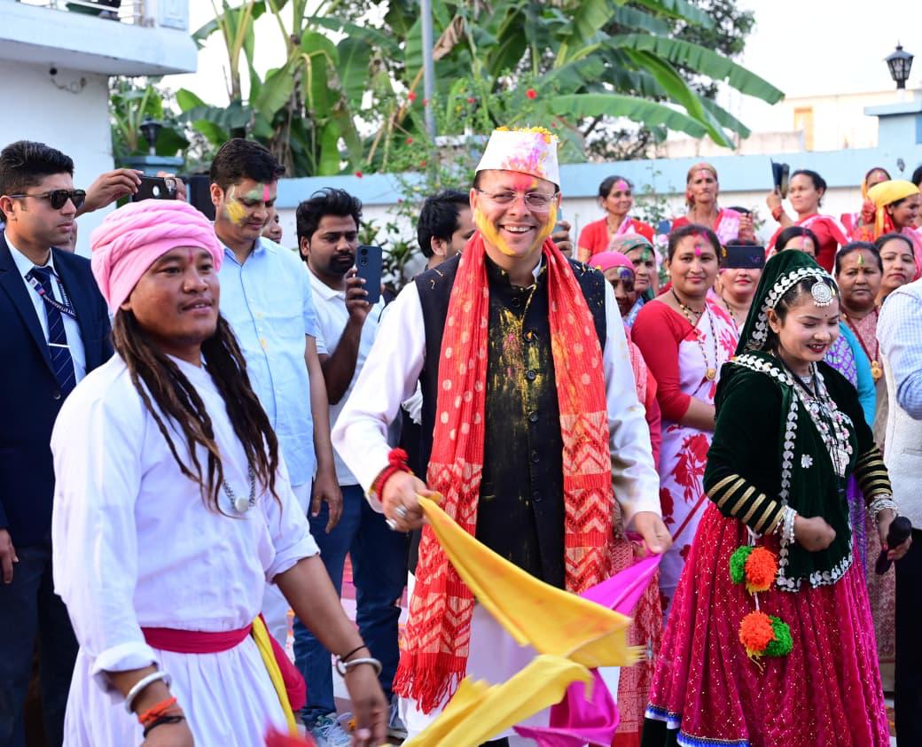 CM Pushkar Singh Dhami celebrates holi at his private residence