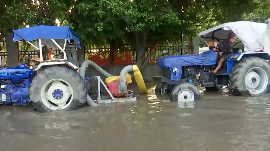Delhi's Nigam Bodh Ghat area still faces acute waterlogging following a rise in the water level of the River Yamuna. Machines have been installed to pump out the water that entered the area.
