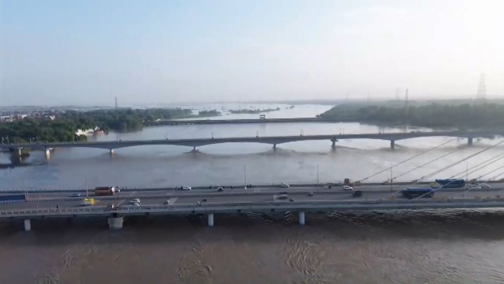 This morning, drone visuals from Loha Pul showed the Yamuna River flowing above the danger level following incessant rainfall.