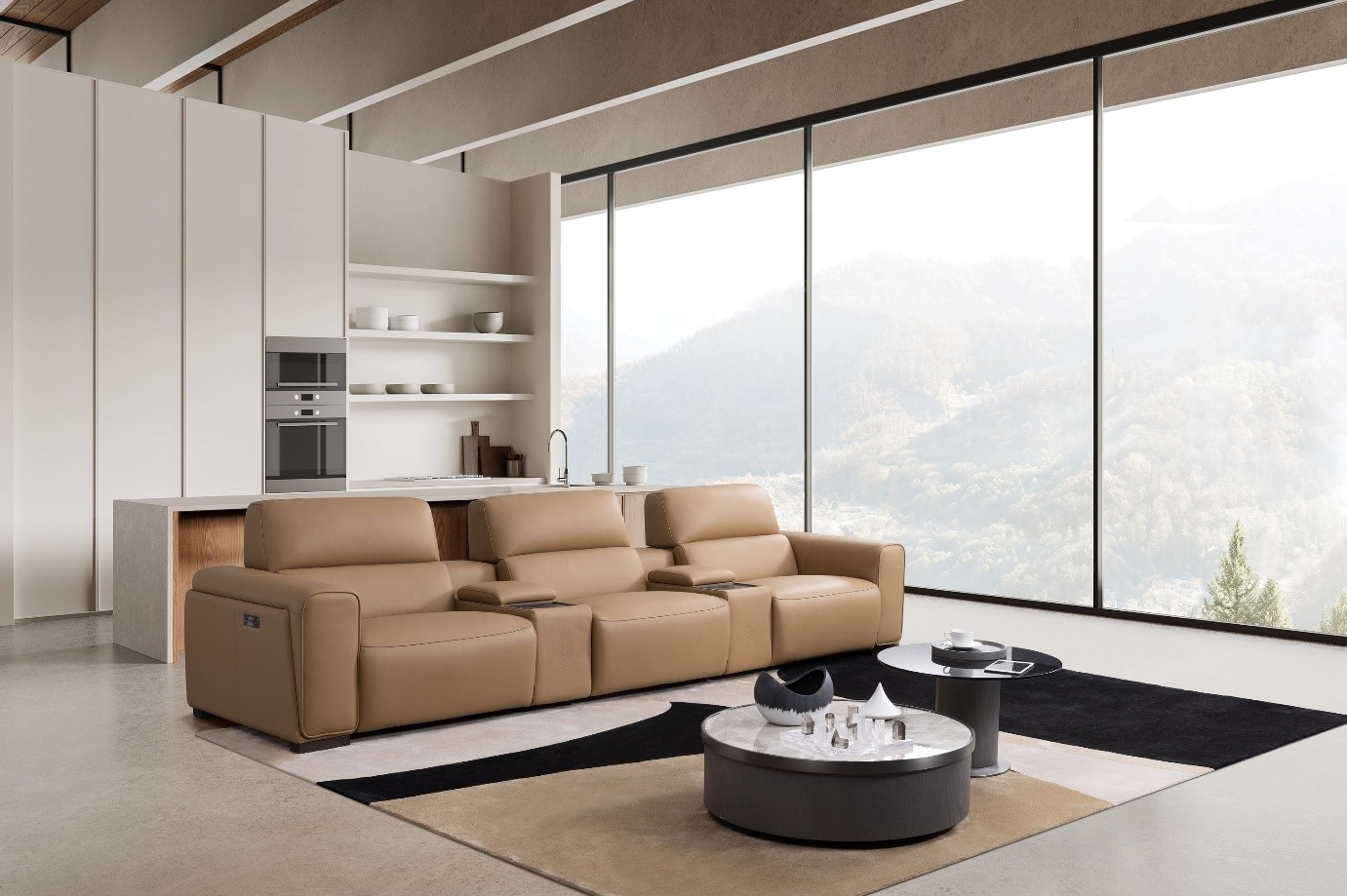 Closing the collection is Nova. This convertible sofa features an adjustable glider function, transitioning easily from standard seating to chaise or bed. Operated via wireless remote, Nova includes secure storage features while maintaining its sleek design integrity.