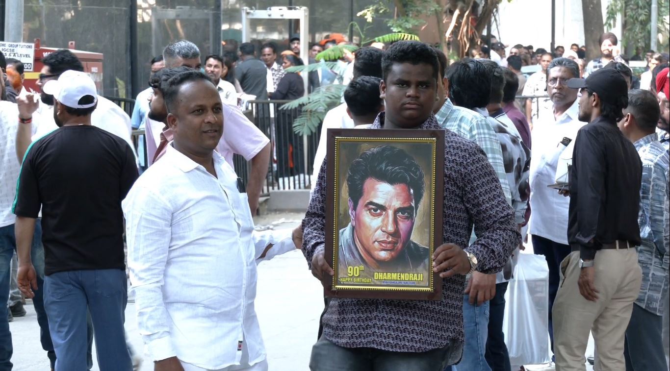 Fans gather outside Dharmendra's residence to celebrate late actor's 90th birth anniversary