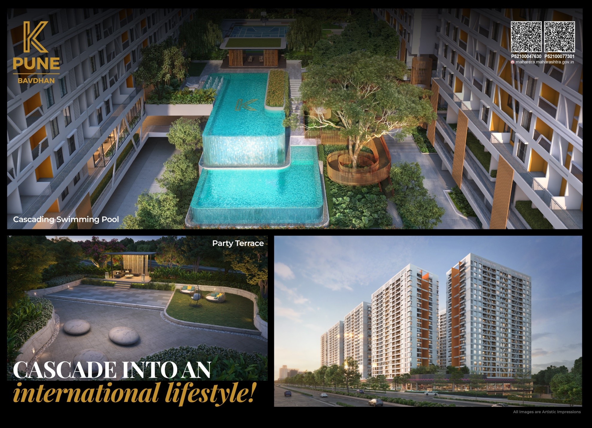 Located 1.7 km from Chandni Chowk on the Konkan Expressway, K Pune offers 2, 3 & 4 BHK residences across 7 towers. The rare island land parcel is bordered by roads on all sides yet surrounded by NDA and DRDO hills on three sides--connectivity meets tranquility.