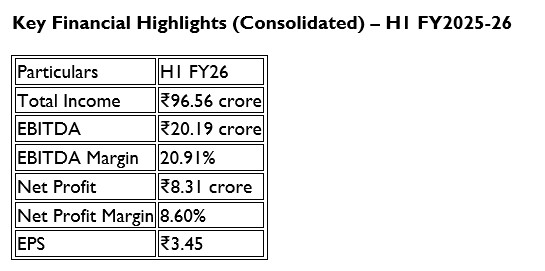 Glen Industries Reports INR 97 Crore Total Income in H1 FY26