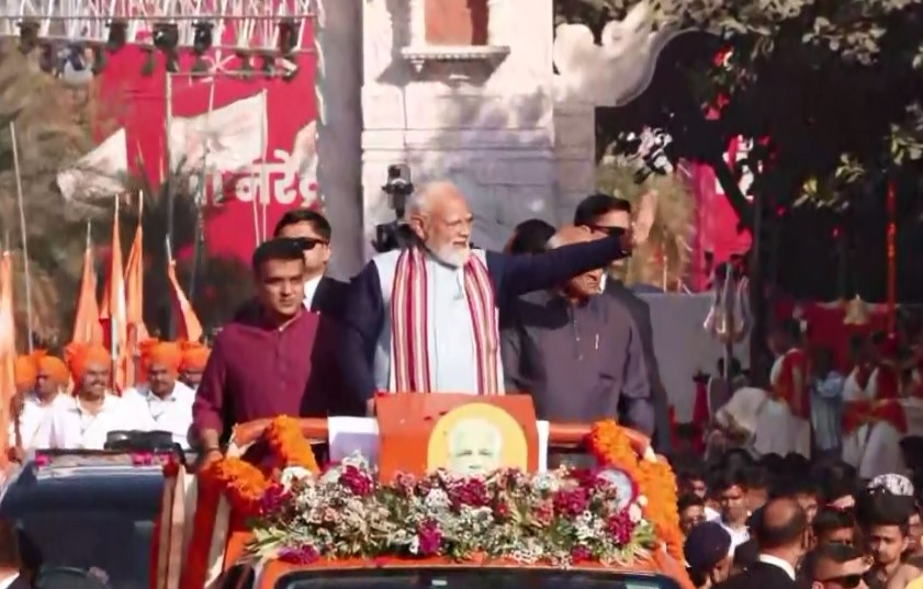 Somnath (Gujarat) [India], January 11 : Prime Minister Narendra Modi on Sunday participated in a 'Shaurya Yatra' at Somnath as part of the four-day-long national commemoration celebrating 1000 years of unbroken faith and resilience since the first recorded attack on the Somnath Temple in January 1026 by Mahmud of Ghazni.