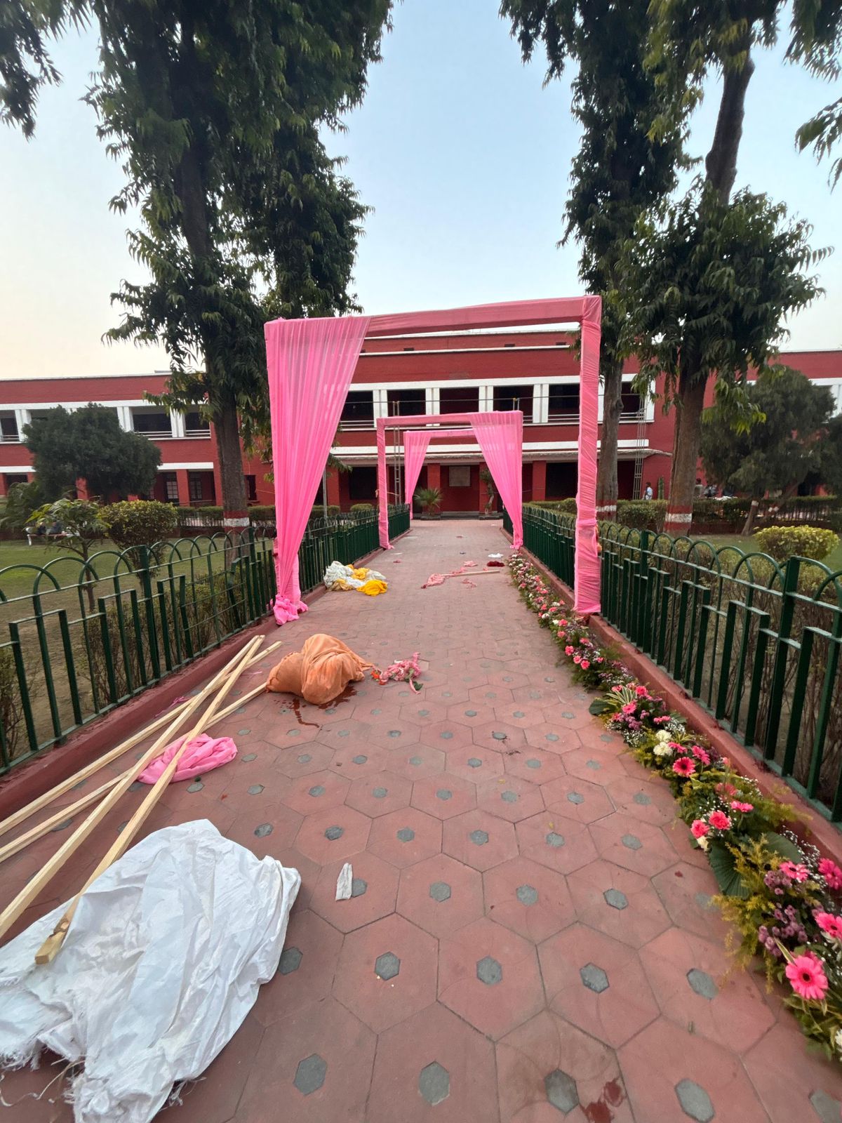 Visuals widely shared on social media showed the college premises adorned with pink and white tents, with workers giving final touches to the arrangements. Parts of the campus, including the hostel building, were reportedly converted into accommodation for wedding guests.