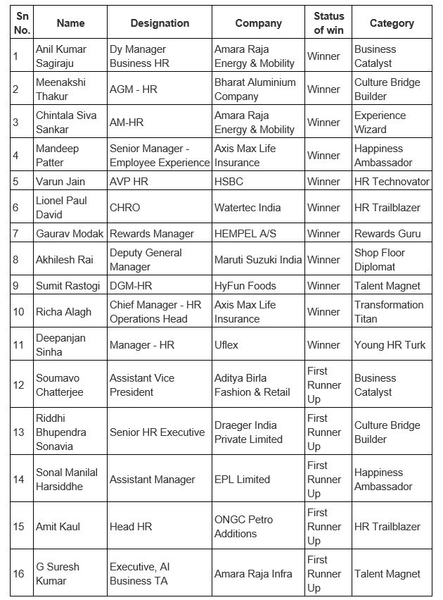 Sandip Ghose, MD & CEO, Birla Corps, articulated the jury's philosophy, "As a jury, we weren't just looking for good HR practices -- we were looking for creativity that redefines value creation. It wasn't about who had the most polished process or the biggest scale, but about who dared to think differently, who connected people and performance in a way that drove measurable business impact. What stood out for us were those entries that showed HR not as a support function, but as a co-creator of strategy, innovation, and growh."