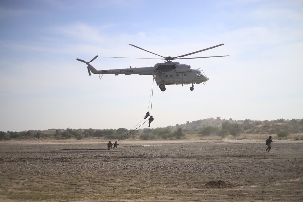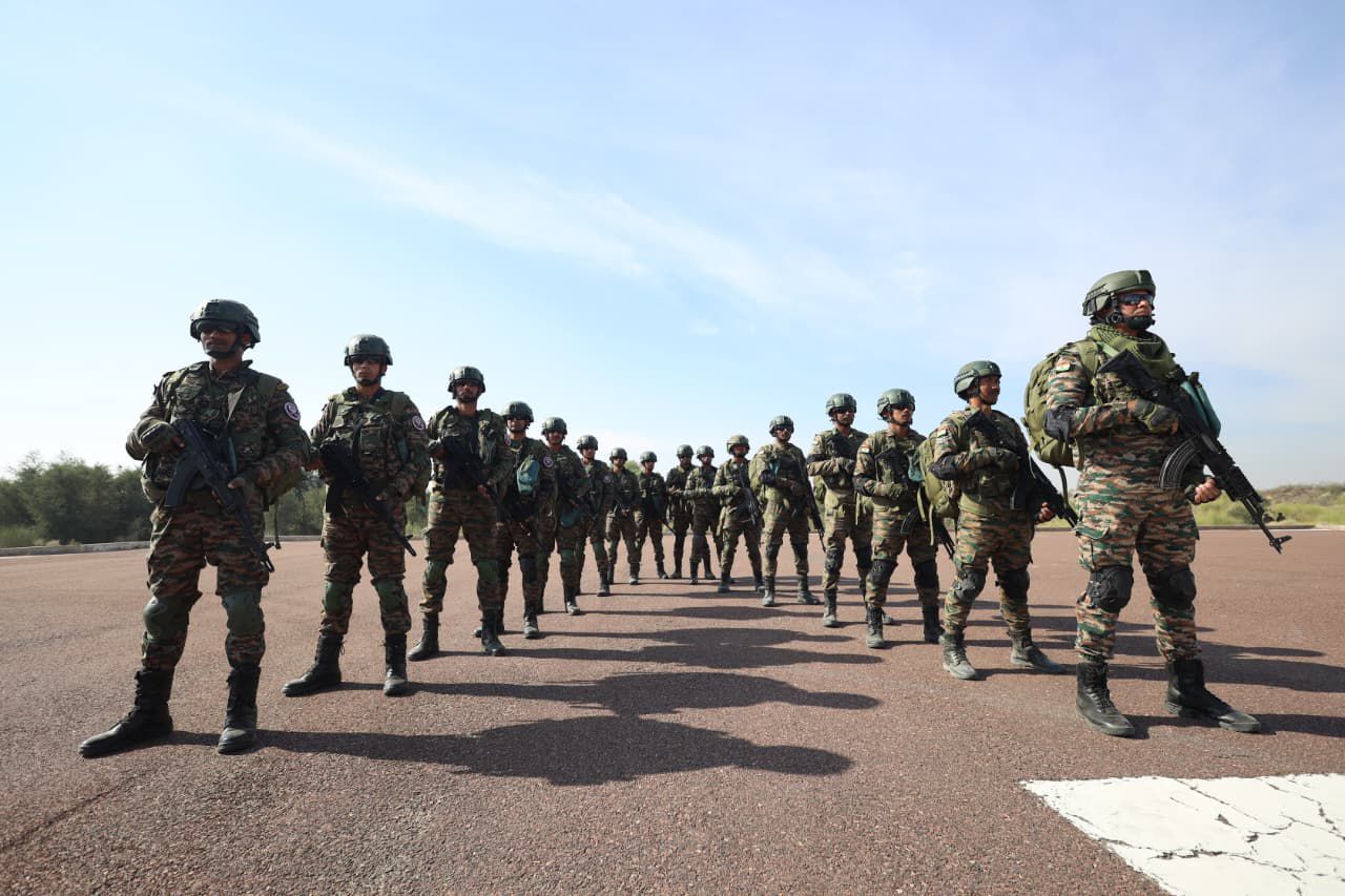 During the training, troops from both sides carried out Army Martial Arts Routine (AMAR) drills, helicopter slithering and low-hover jumps from MI-17 helicopters, along with counter-IED familiarisation through structured briefings and visits to specialised training facilities.