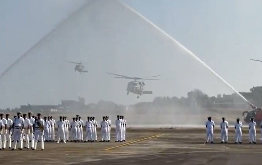 At the commission ceremony, the Indian Navy gave a water cannon salute to the MH-60R chopper.