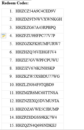 * A maximum of 10 users can redeem each code on a first come, first served basis