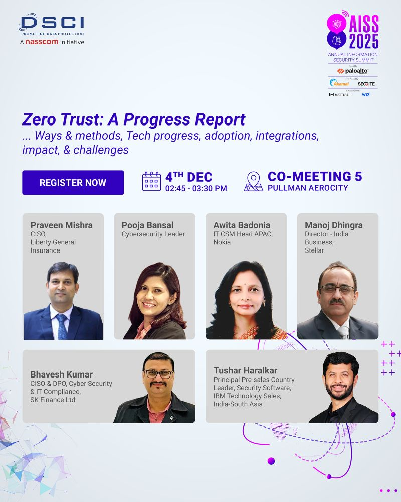 Recently, Stellar's Co-Founder & Director - India Business, Mr. Manoj Dhingra, shared deep insights in the 20th NASSCOM-DSCI AISS 2025 session titled "Zero Trust: A Progress Report". The session brought together leading cybersecurity experts to discuss the latest methods, technological advancements, adoption trends, integration challenges, and the real-world impact of Zero Trust frameworks across enterprises.