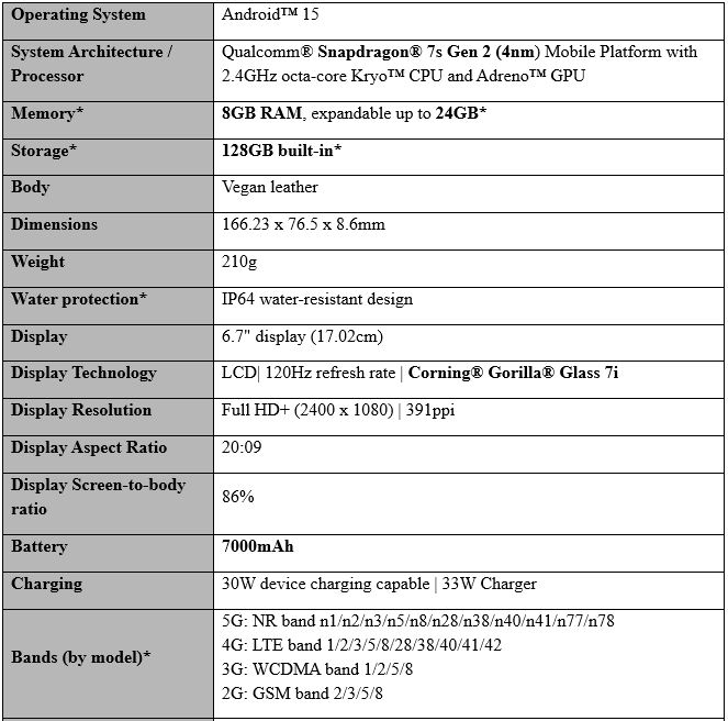 The moto g67 POWER will be available in a single 8GB RAM + 128GB storage variant and will come in three stunning Pantone™ curated color options -- Pantone™ Cilantro, Curacao Blue and Parachute. All featuring an ultra-premium vegan leather finish that enhances both grip and style.