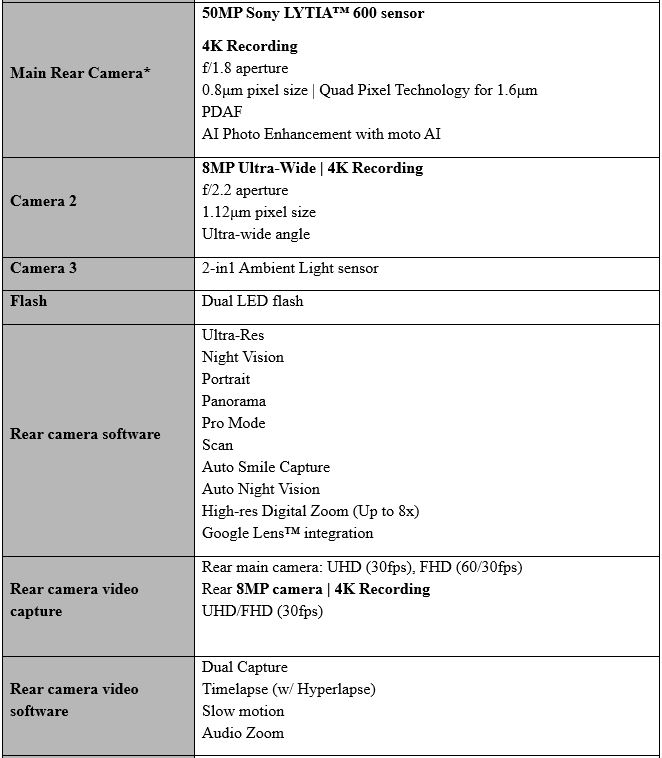 The moto g67 POWER introduces a segment best# 50MP Sony LYTIA™ 600 sensor, delivering stunning clarity, rich detail, and exceptional low-light performance. It is the only phone in its segment to offer 4K video recording from all cameras, including the 8MP Ultrawide lens and a segment's highest 32MP selfie camera with Quad Pixel technology and Photo Booth mode. It features an impressive 2-in-1 ambient sensor intelligently enhances colour, clarity, and lighting in real time, ensuring social ready shots in every condition. With All-Pixel Focus and 32x more focusing pixels, users get faster and more accurate focusing even on challenging light. Powered by moto ai, the camera introduces intelligent features like AI Photo Enhancement Engine, Auto Night Vision, AI-Powered Portraits, Auto Smile Capture, and Hi-Res Zoom. Users can further enhance their creativity with Google Photos AI tools such as Magic Eraser, Photo Unblur, and Magic Editor, bringing advanced generative AI photography tools right to the phone.