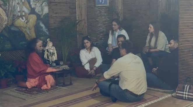 Visuals from the ashram show the late actor's son, Nikitin Dheer, along with the others in a deep conversation with spiritual guru Swami Chidanand Saraswati.