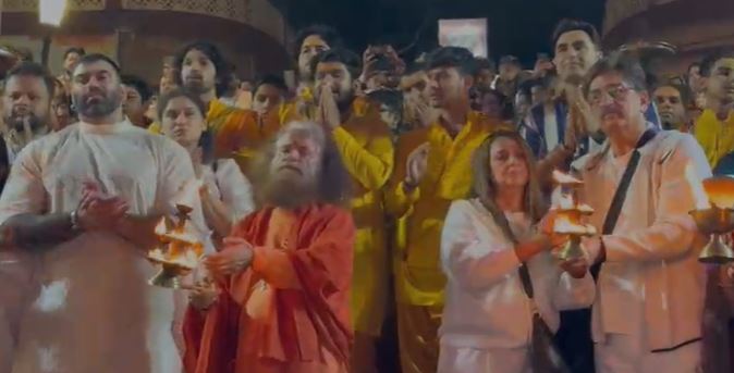 The family performed a peace prayer to honour the late Pankaj Dheer and also met Parmarth Niketan's head, Swami Chidanand Saraswati, before witnessing a Ganga Aarti.
