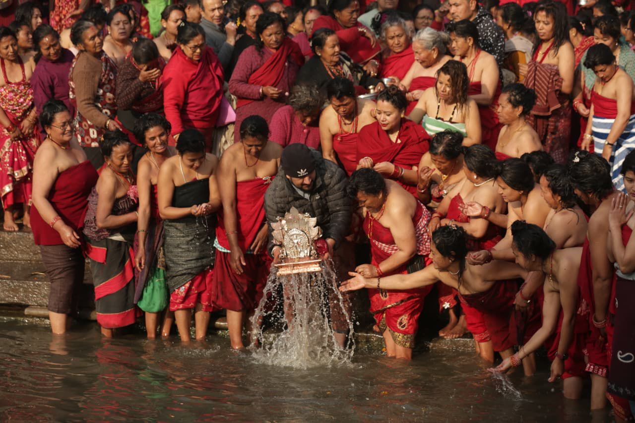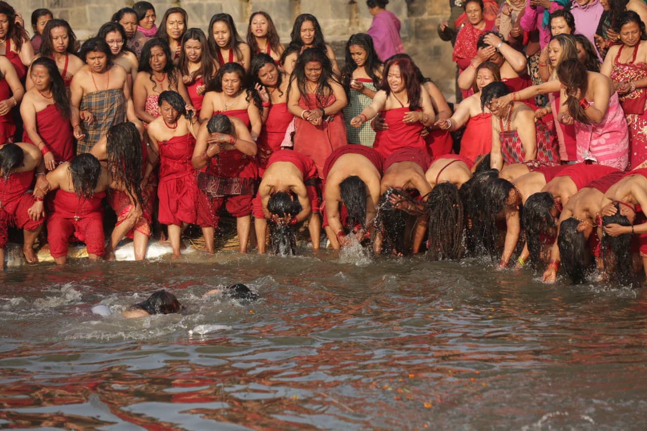 This ritual bath features the rolling-on-ground, which is attended by dozens of devotees as thousands gather around the premises of Hanuman Ghat of Bhaktapur, dedicated to Lord Madhav Narayan.