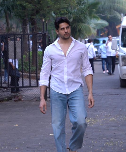 Bollywood star Sidharth Malhotra attended the funeral of the Mahabharat actor to pay tribute to the veteran artist. The actor donned a white shirt and a denim jeans for the visit.