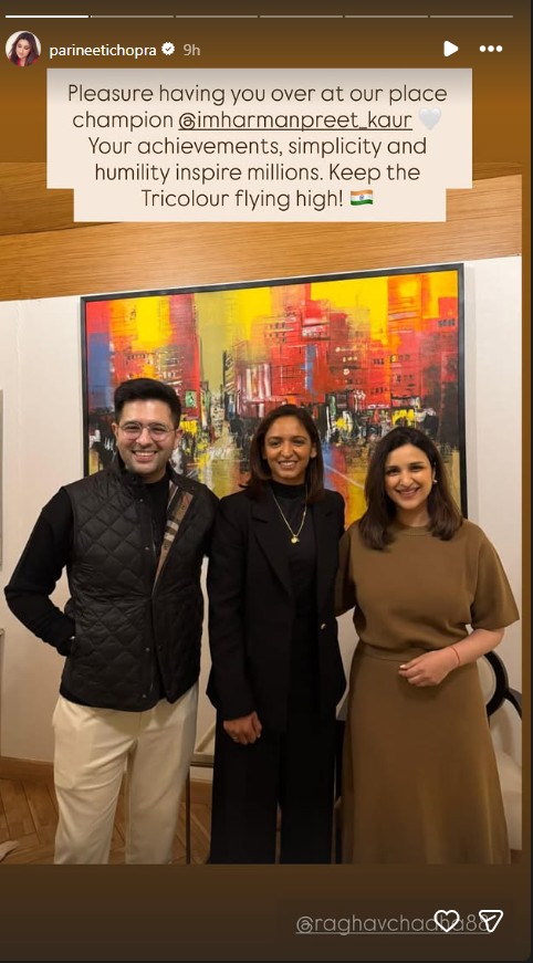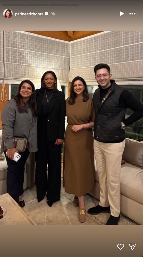 On Saturday, Parineeti posted a series of photographs on Instagram featuring herself, Raghav Chadha, and Harmanpreet Kaur, capturing candid moments from their time together.