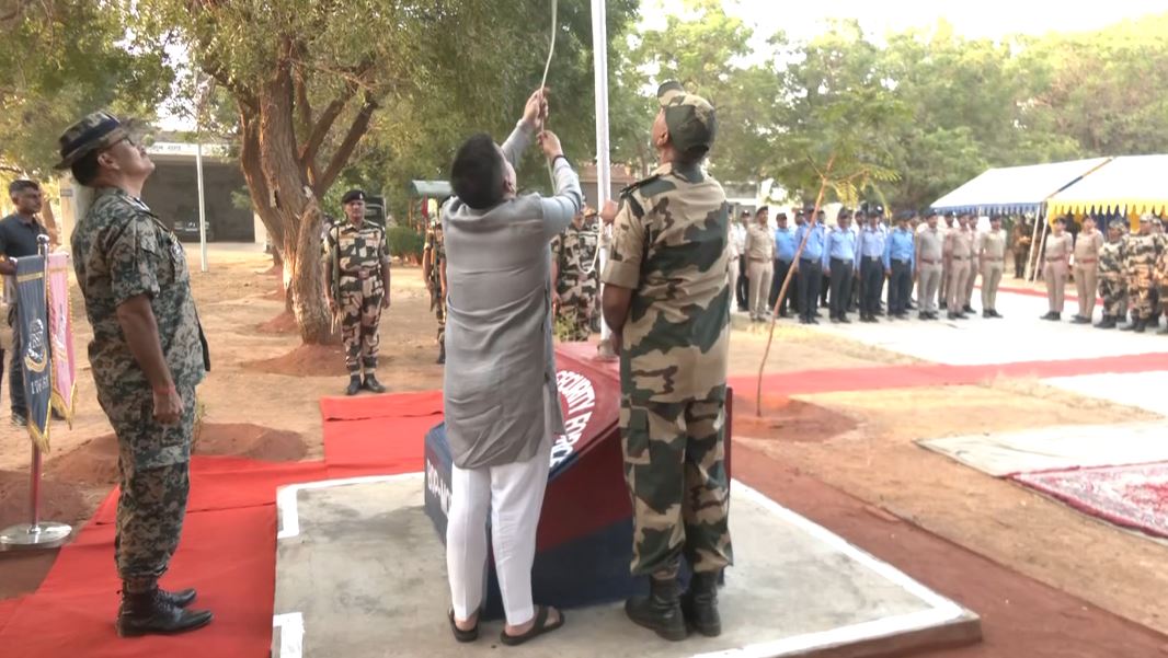 Kachchh (Gujarat) [India], November 7 : Gujarat Deputy Chief Minister Harsh Sanghavi on Friday unfurled the national flag in Lakhpat, Kachchh district, while participating in an event with BSF jawans to commemorate the 150th anniversary of India's national song, 'Vande Mataram'.