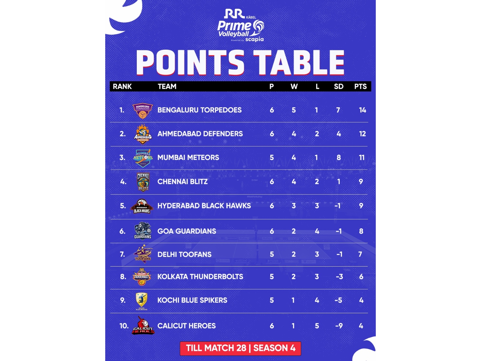 PVL 2025: Ahmedabad Defenders hand Mumbai Meteors their first defeat of the season