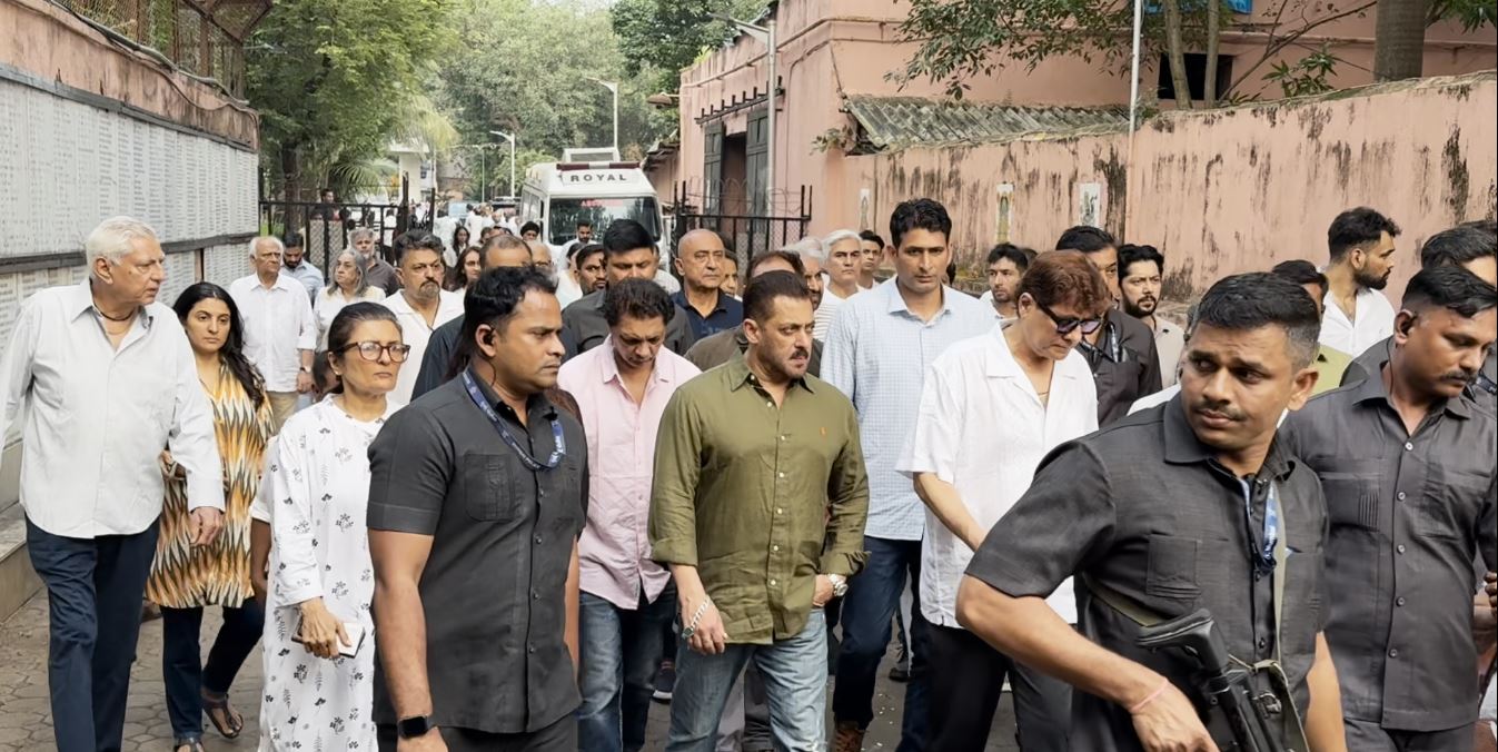 Amid heavy security arrangements, Salman Khan arrived at the cremation ground in Mumbai and was seen following Dheer's son, actor Nikitin Dheer, who carried his father's mortal remains for the last rites.