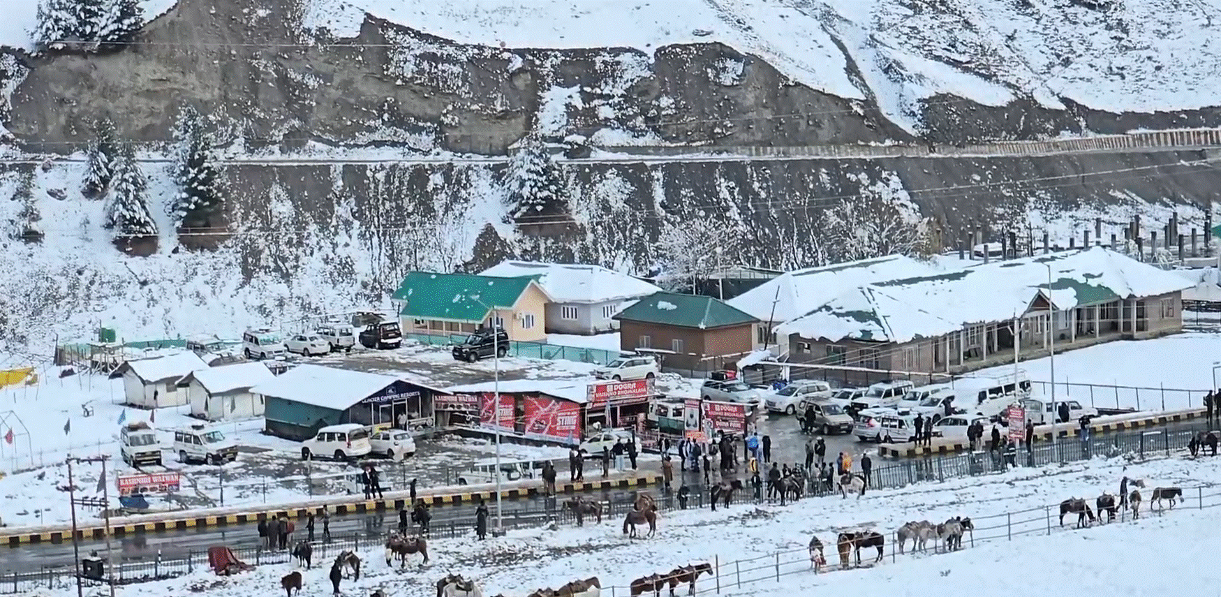 The fresh snow has turned Sonamarg into a dreamlike winter destination, offering visitors an opportunity to experience the serene beauty and hospitality of Central Kashmir.