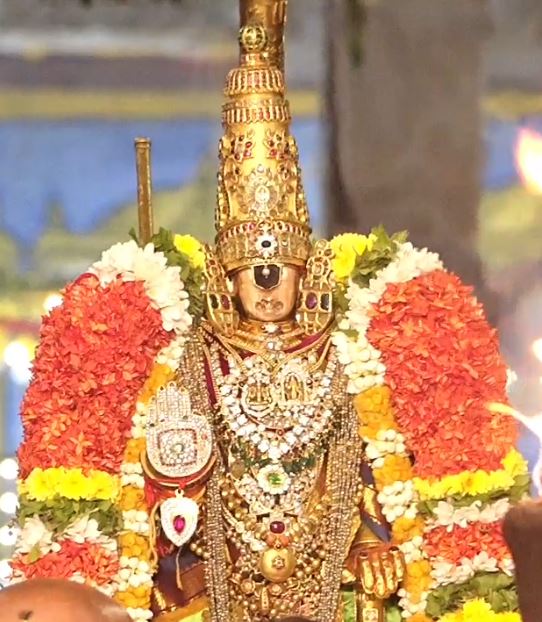 On the first day of Pagal Pathu, Namperumal (the processional deity) set out from the sanctum sanctorum at 7:00 am, blessed devotees, and will remain at the Arjuna Mandapam throughout the day. In the night, Namperumal will return in procession from the Arjuna Mandapam to the sanctum sanctorum.