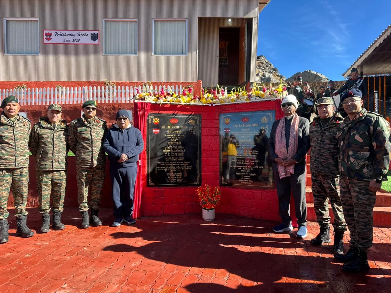 The inauguration ceremony at Cho La was attended by Om Prakash Mathur, Governor of Sikkim, and Justice Biswanath Somadder, Chief Justice of the Sikkim High Court, along with senior civil and military officials.