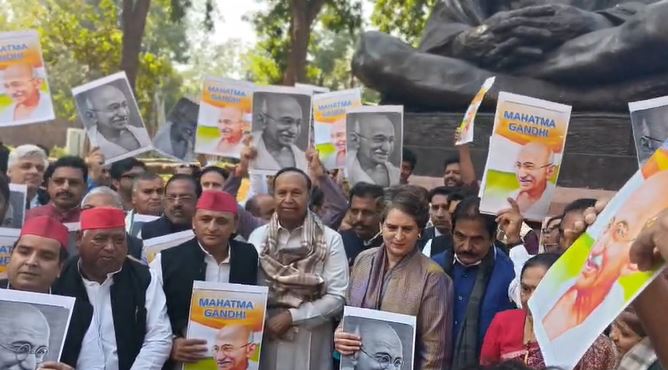 Speaking during the protest against the proposed renaming of MGNREGA, Priyanka Gandhi said the government appeared to be "obsessed" with changing names, a move that she claimed leads to unnecessary expenditure. She stressed that the employment scheme carries the name of Mahatma Gandhi, the Father of the Nation, and said removing or altering it amounts to disrespect.